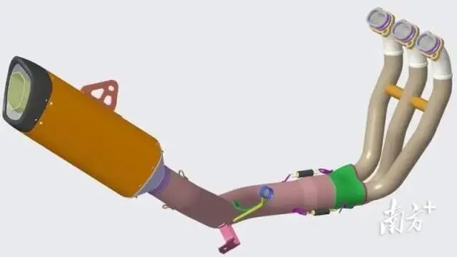 夺冠赛车的排气管,由江门蓬江一家摩托车配件企业——江门市瑞跃实业有限公司生产。
